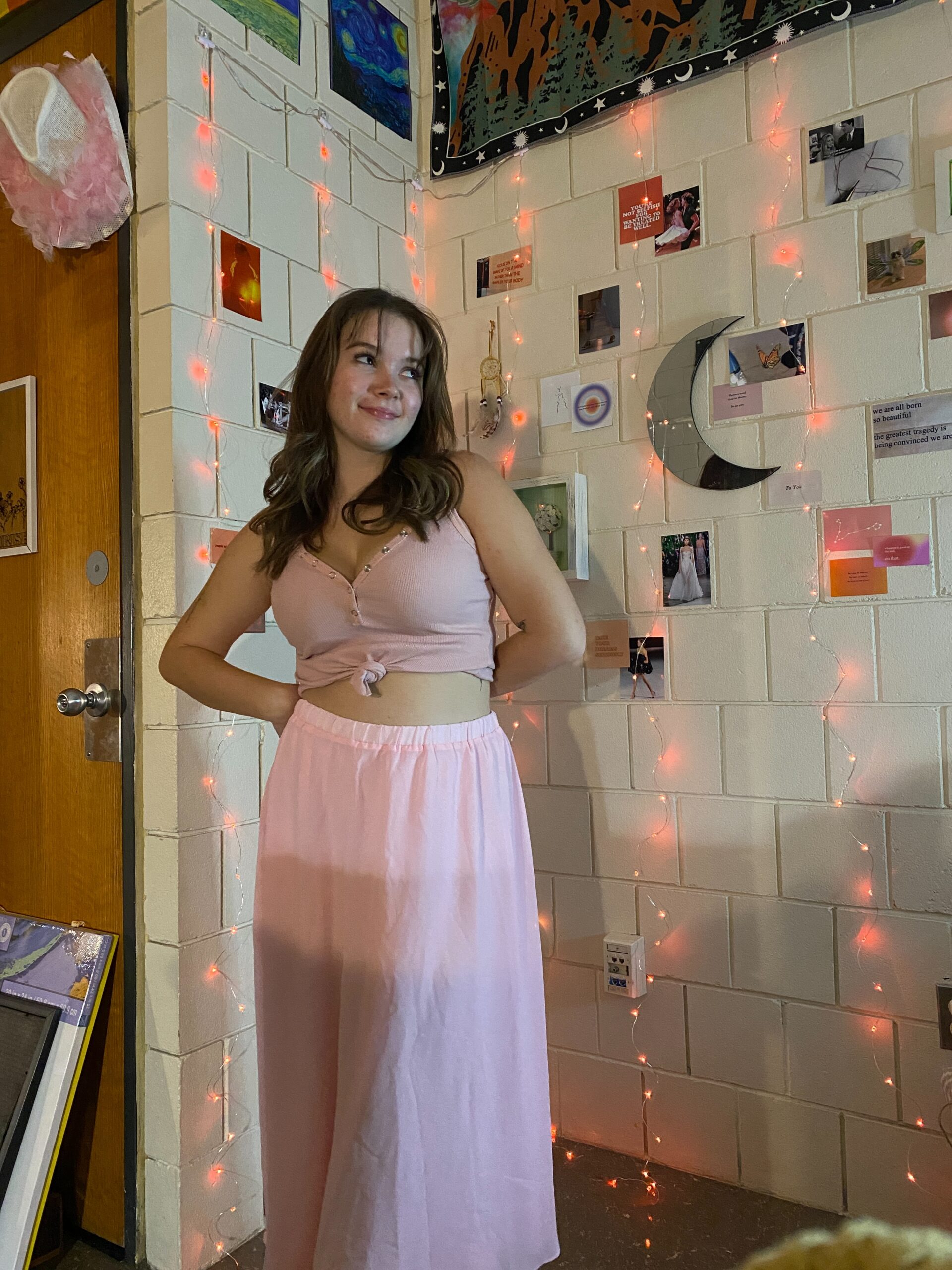 In each outing, she targeted specific pieces of clothing, such as a pink dress or skirt for the Dirty Dancing costume, but allowed most of the costumes to evolve naturally. For example, Stevie Nicks made the list as soon as the top hat surfaced. While the poncho substituted nicely for a shirt with butterfly sleeves.