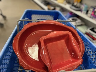 There’s Never Enough Munchies: If seven-layer dip is on your menu, we’ve got a dish for that. From classic covered Pyrex to this Pier 1 terracotta serving set — freshening your dishware is easy and affordable with a visit to Goodwill.
